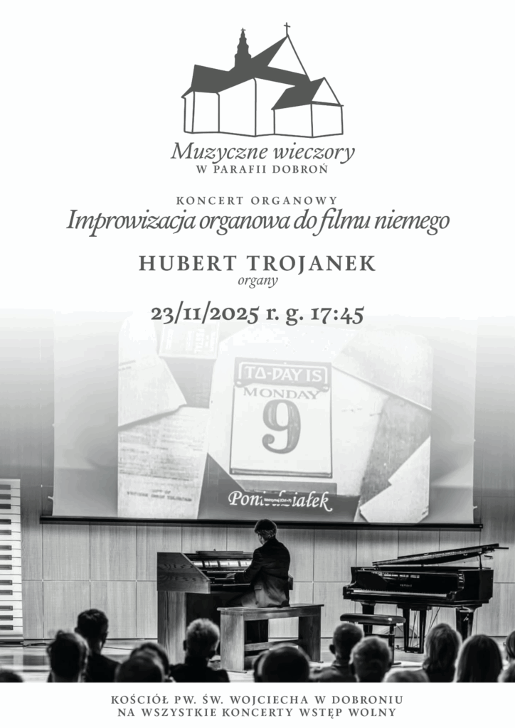 Tego wieczoru wystąpi Hubert Trojanek z Poznania – utalentowany organista młodego pokolenia, laureat wielu konkursów międzynarodowych. Artysta zaprezentuje improwizację do filmu niemego, nawiązując do tradycji pierwszych seansów kinowych, kiedy muzyka towarzyszyła obrazom na żywo.