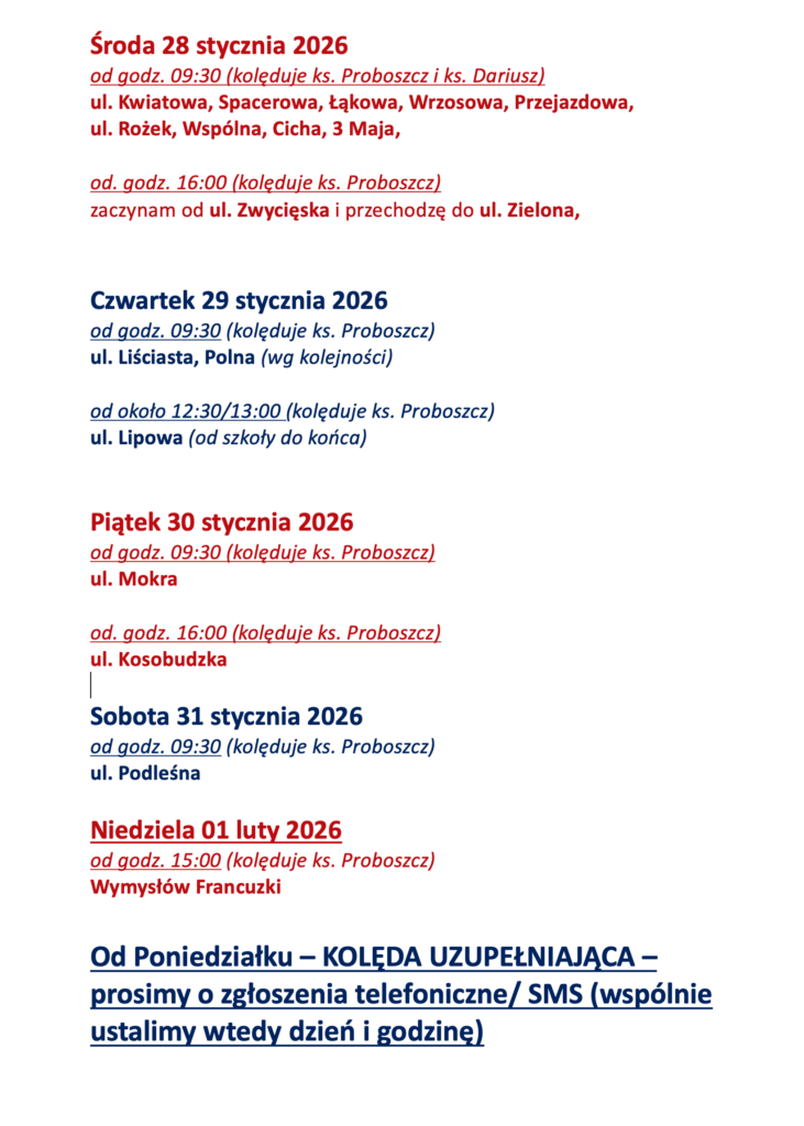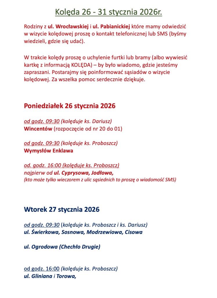 Kolęda 26 – 31 stycznia 2026